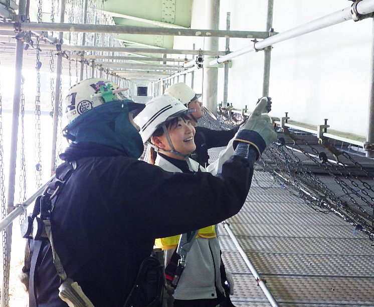 大きな鉄塔の調査や有名な橋のメンテナンス、大規模な建物の改装工事、九州での長期常駐など、本当に幅広い現場を見てきました。古くなった建造物をメンテナンスして、また誰かの日常を支えていく。その一瞬に立ち会えることに、とても大きなやりがいを感じています。山の現場では道を間違えて登ったり降りたり…なんてことも何度もありましたし、筋肉痛や砂まみれになるような過酷さもあります。でも、それでも続けられたのは、一緒に働く仲間の存在が大きいです。冗談で和ませてくれたり、さりげなく気遣ってくれたり。「この人たちとなら大丈夫」と思える安心感に支えられて、どんな場面も乗り越えてこられました。