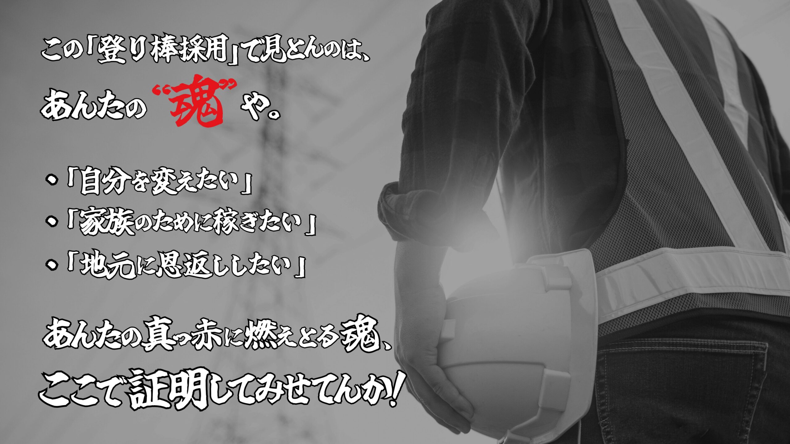 | 歓迎資格 | 第1種電気工事士、第2種電気工事士、普通自動車運転免許(第1種)、フルハーネス型墜落制止用器具特別教育 |